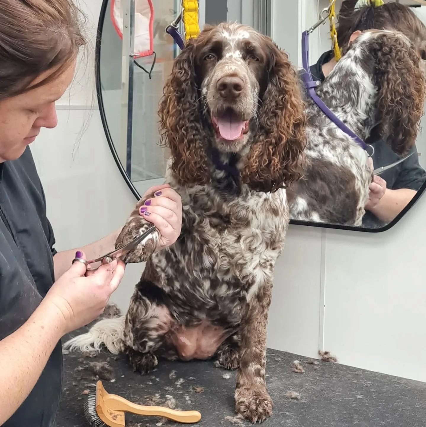 Something ideal between grooming sessions or after a muddy adventure. It doesn’t include trimming or tidying but leaves your dog clean, soft, and comfortable.